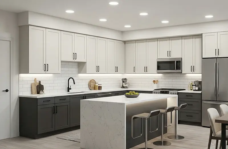 The single most requested kitchen design across all Alberta regions right now. The most popular combinations: